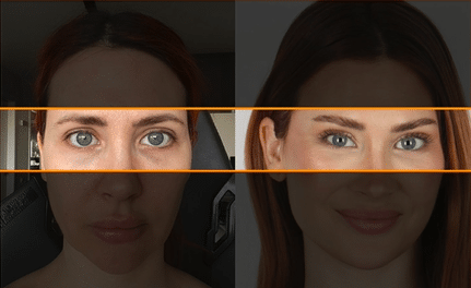 Vamos a fijarnos ahora en la zona de los ojos. Previamente a la intervención Lizy lucía una periórbita en forma de O, redondeada, mientras que lo que consideramos bello es una periórbita en forma de C abierta hacia afuera. Y este fue el resultado conseguido, una mirada más joven y menos cansada.
